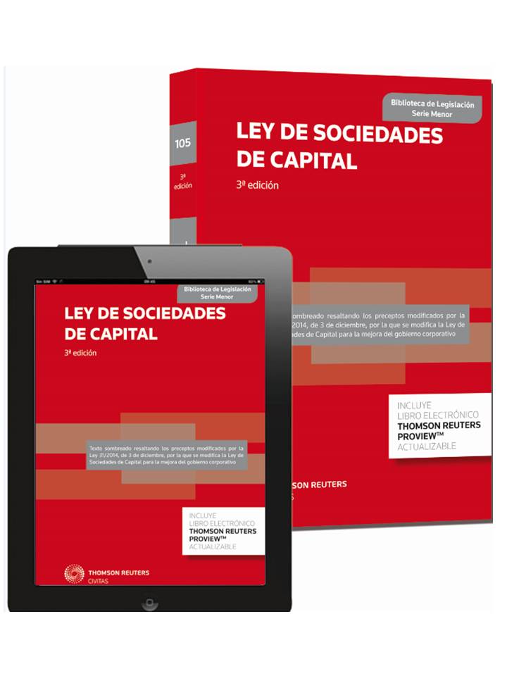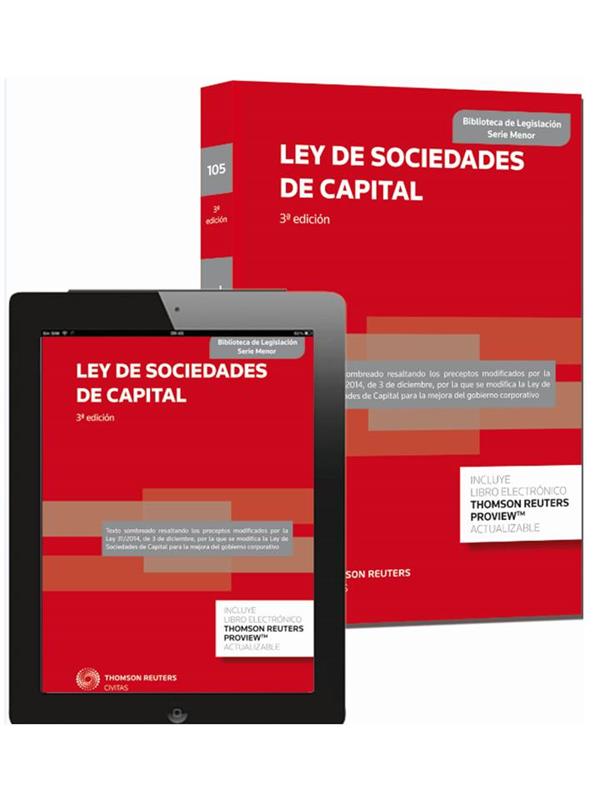 La Ley de Sociedades de Capital se presenta actualizada con las modificaciones introducidas por la Ley 31/2014, de 3 de diciembre, por la que se modifica la Ley de Sociedades de Capital para la mejora del gobierno corporativo.En el Texto Refundido de la Ley de Sociedades de Capital se reúne el contenido de las dos leyes especiales del régimen jurídico de las sociedades anónimas y de las sociedades de responsabilidad limitada, con la importante adición de aquella parte de la Ley del Mercado de Valores que regula los aspectos más puramente societarios de las sociedades anónimas con valores admitidos a negociación en un mercado secundario oficial, además de los artículos que el Código de Comercio dedica a la sociedad comanditaria por acciones.