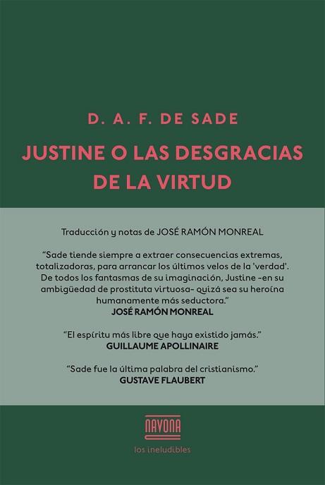 Cuando pierden a sus padres siendo todavía muy jóvenes, las hermanas Juliette y Justine se ven obligadas a buscarse la vida en un mundo malvado y cruel. Ante este hecho, las actitudes que adoptan son diametralmente opuestas: la morena Juliette carece de escrúpulos para prostituirse y halla cierto placer en unirse a viejos acaudalados de cuyas haciendas se acaba apoderando, mientras que la rubia y piadosa Justine elige el imposible camino de la virtud. Rodeada de personajes depravados y perversos, en un intento de salvaguardar sus preciados principios, Justine padecerá todo tipo de vejaciones, humillaciones, abusos e incluso torturas, hasta caer irremediablemente en la degradación. Mientras que la rectitud de su conducta será injustamente castigada, los personajes corrompidos con quienes se cruza saldrán siempre indemnes. Esta obra subversiva, repleta de escenas sexuales explícitas, intercaladas con reflexiones filosóficas en torno a la moral y a la inexistencia de Dios, es un clásico de la literatura universal que no deja indiferente a quien se adentra en ella.