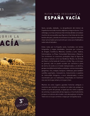 Estas rutas por la España vacía, ilustradas con bellas fotografías y mapas detallados, transitan por comarcas de Aragón, Castilla-La Mancha, Castilla y León, Galicia, Extremadura, La Rioja, Comunidad Valenciana y Navarra. Son territorios en ocasiones protegidos bajo la figura de un parque natural, como las Bardenas Reales, los Arribes del Duero, la Serranía de Cuenca o al Alto Tajo, y a los que, en general, solo se puede acceder por carretera o pista de tierra. El coche es el medio indispensable, y el destino, parajes increíblemente bellos y solitarios: cerros erosionados, gargantas, ríos, estepas, bosques o dehesas, pero también castillos apartados,