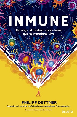 En Inmune, Dettmer continúa y amplía la labor de divulgación que realiza en su famosísimo canal de YouTube «En pocas palabras», uno de los canales más vistos del mundo. Lleno de atractivos gráficos e ilustraciones, este libro riguroso pero accesible para todos los públicos nos invita a un viaje para conocer con detalle cómo funciona y cómo nos protege nuestro sistema inmunitario.