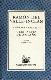 Gerifaltes de Antaño, última novela de La Guerra Carlista, se centra en una figura histórica, Don Manuel Santa Cruz, párroco de Hernialde y jefe de guerrilleros carlistas, hombre de abrumadora personalidad, rodeado de leyenda, y cuyo potencial novelesco fue aprovechado por escritores como Baroja y Unamuno. Un personaje tan poderoso que hizo a Valle olvidar su primera visión épica de una empresa colectiva para evocar su gesta individual. Apoyado en el fervor popular que despierta el carlismo en esos mozos valientes, alegres y animosos, gerifaltes que luchan por amor a la causa, el cura Santa Cruz, grandioso y terrible, sacia sus ansias de poder. Junto a él se perfilan otros personajes, como Don Pedro Mendía, Agila o el profético Ronquito, pero el verdadero protagonista será ese sentimiento que excita el texto, pletórico al principio, cansado y temeroso después, que concluirá en un patético final. Miguel L. Gil ha preparado esta edición en la que, por su estrecha relación con la trilogía, se ofrece en ápendice el texto de La corte de Estella.
