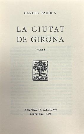 La Ciutat de Girona, publicada en dos volums el 1929, constitueix una de les obres més emblemàtiques de Carles Rahola. En ella el seu autor fa un gran esforç per analitzar la ciutat des de tots els punts de vista: històric, social, econòmic, cultural i urbanístic. Rahola hi sintetitza tant les aportacions d'altres estudiosos com els seus treballs propis de recerca.