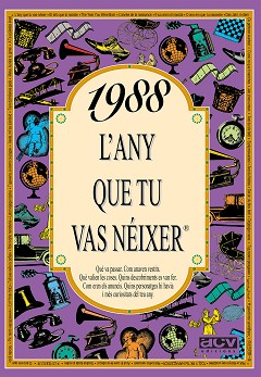 El llibre de 1988 conté una selecció de notícies curioses que van passar aquell any, imatges, anuncis i en general tot allò per entendre com era el món aquell any, com era la moda, què es va inventar, quins anuncis hi havia, les cançons i les pel·lícules d'èxit, quant valien les coses, quins personatges famosos destacaven, i moltes coses més. Aquest llibre de 1988 forma part de la popular col·lecció "L'any que tu vas néixer". Un detall ideal per al protagonista de la festa d'aniversari, o per sorprendre a cadascun dels convidats del teu proper sopar amb amics o família. Posa el llibre de l'any de cada convidat al seu lloc de la taula i veuràs la sorpresa quan se'l trobin. De seguida es trencarà el gel amb converses apassionades plenes de records. La col·lecció "L'any que tu vas néixer" va de 1920 a 2007.